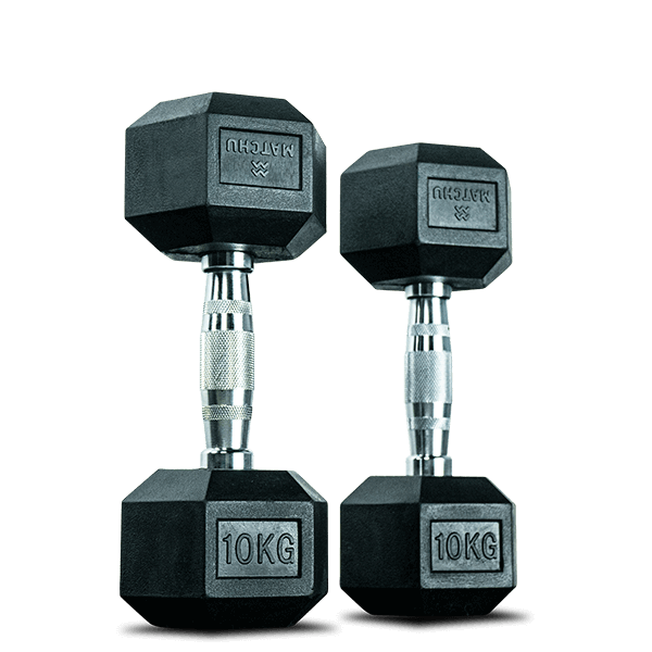 Our Hexa dumbbell 10kg is a great weight for those who are more experienced with using dumbbells and want to challenge themselves further. The hex dumbbell is made of rubber, which means you can throw and slam it without fear of damage. This is ideal for a long-lasting dumbbell. These 10kg dumbbells feel comfortable in hand and their hexagonal shape prevents them from rolling away easily. Hex dumbbells are available in weights of 5, 7.5, 10, 12.5, 15, 17.5, and 20kg. You can purchase the dumbbells according to your preference or combine them to target different muscle groups. Note: the hex weights are greased to prevent damage and rust during storage and transportation. They may feel a bit greasy upon receipt, but a quick wipe will solve this. Want to learn more about our dumbbells? Check out our category page!