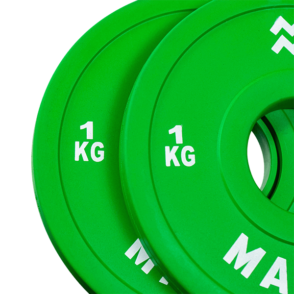 The fractional plates 1.0 kg are getting closer to heavier work. They are ideal for adding that extra kilogram per side to break your lifting record. The plates have a bright green color that makes them stand out in the gym. Everyone has felt at some point that they have reached a plateau and need to add more weight to the bar. Fractional plates are the solution. By gradually adding small amounts of weight, you can improve your maximum lifting capacity. The ‘change plates’ come in increments of 0.25, 0.5, 1, 1.5, and 2.5kg. The fractional plates are sold in sets of 2. With a 50mm inner ring diameter, these plates can be used on a standard size Olympic barbell. Each weight has a distinct color for easy identification. Our fractional plates are designed for professional use, ensuring durability for years to come. Suitable for both the gym and serious home gym setups.